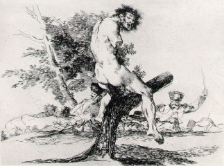 Viewed out of context, these scenes look like the Greater Des Plaines High School performance of "Les Miserables", but this sequence is actually a Catalan theater group re-enacting their interpretation of the engravings entitled, "The Disasters of War" (left).