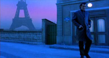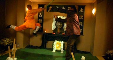 proceeds to blast him to bits. There you have it. Filmed entertainment at its paragon. If you haven't made up your mind yet, I guess I ought to tell you that the film was directed by Michael Oblowitz and stars Steven Seagal, whose career has been fully resuscitated in low budget straight-to-vid reductions of his earlier theatrical movies. As I write this, the big fella has three more movies in the pipeline, and must therefore maintain a solid fan base of indeterminate size. Could you guess from the title that it was a Seagal film? He previously made films called Out for Justice and Hard to Kill. Did I mention that Seagal plays an archeology professor with a Ph.D. in ancient Chinese civilizations? Sadly, Carrot Top and Anna Nicole Smith were not available to come to Paris to do their cameo appearances as Pierre and Marie Curie. Big Steve is one mighty tough schoolmarm, as he manages to waste not one member of the Chinese mob, but all of them, and perhaps 20% of the entire Chinese population in the process. What else can you say? Except that the jumbo-sized martial artist is now approaching Brando proportions, and spends much of the the film wearing a muu-muu. To be fair, there were some scenes in the film that looked pretty darned good. These two frames will demonstrate some competent filming as well as Seagal's current waistline and wardrobe. He looks OK when he can drape himself in the long coats, but that is not practical for the fight scenes. |